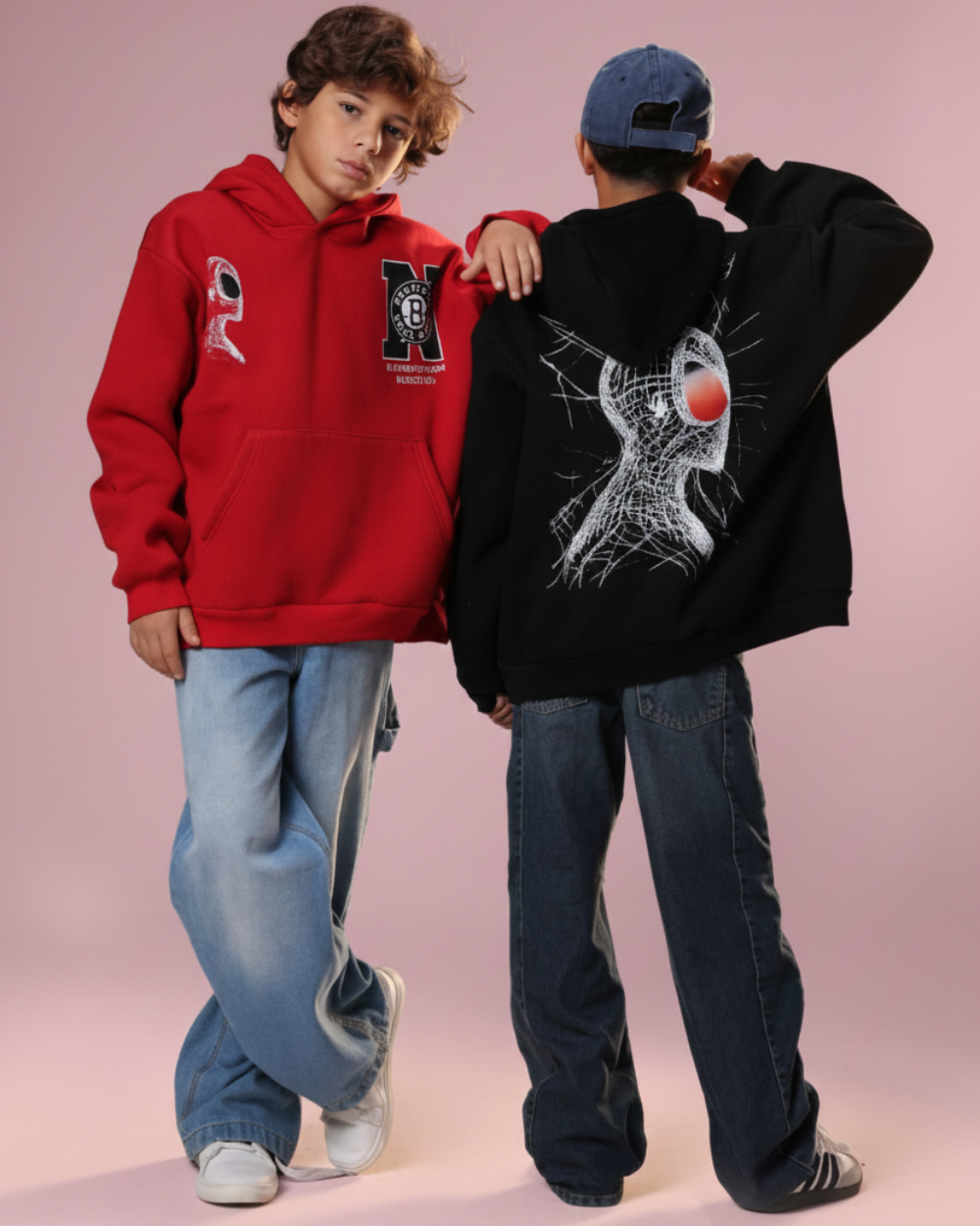 نحن لا نبيع مجرد سويت شيرت اوفر سايز أولادي نحن نقدم لكِ “حضناً دافئاً” يرتديه طفلك. الخامة الداخلية ناعمة كالغيم، مُعالجة بعناية لضمان ألا تضايق بشرته الرقيقة حتى بعد ساعات طويلة من اللعب والجري. إنه التوازن الصعب الذي حققناه: متانة تتحمل شقاوة الأبطال الصغار، ونعومة تليق بلمسات الأم الحنونة.