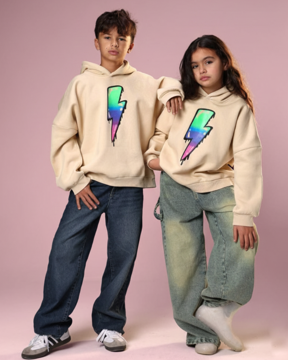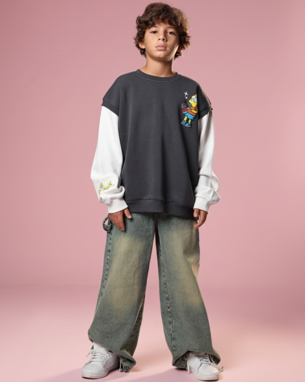 سويت شيرت اوفر سايز أولادي تخيلي تلك الابتسامة على وجه طفلك وهو يشعر بالدفء والحرية في آنٍ واحد.، نؤمن أن ملابس الأولاد لا يجب أن تكون مملة أو مجرد قطع “عملية” فقط. هذا السويت شيرت صُمم ليكون رفيق مغامراته اليومية، قطعة فنية تجمع بين فخامة القطن الميلتون وعصرية قصّة الـ “أوفر سايز” التي تتربع على عرش موضة لا تنتهي.
