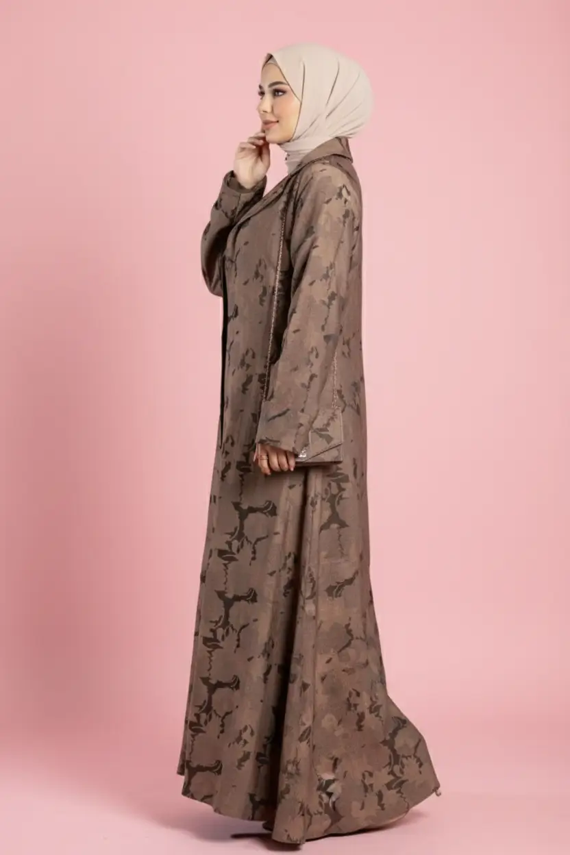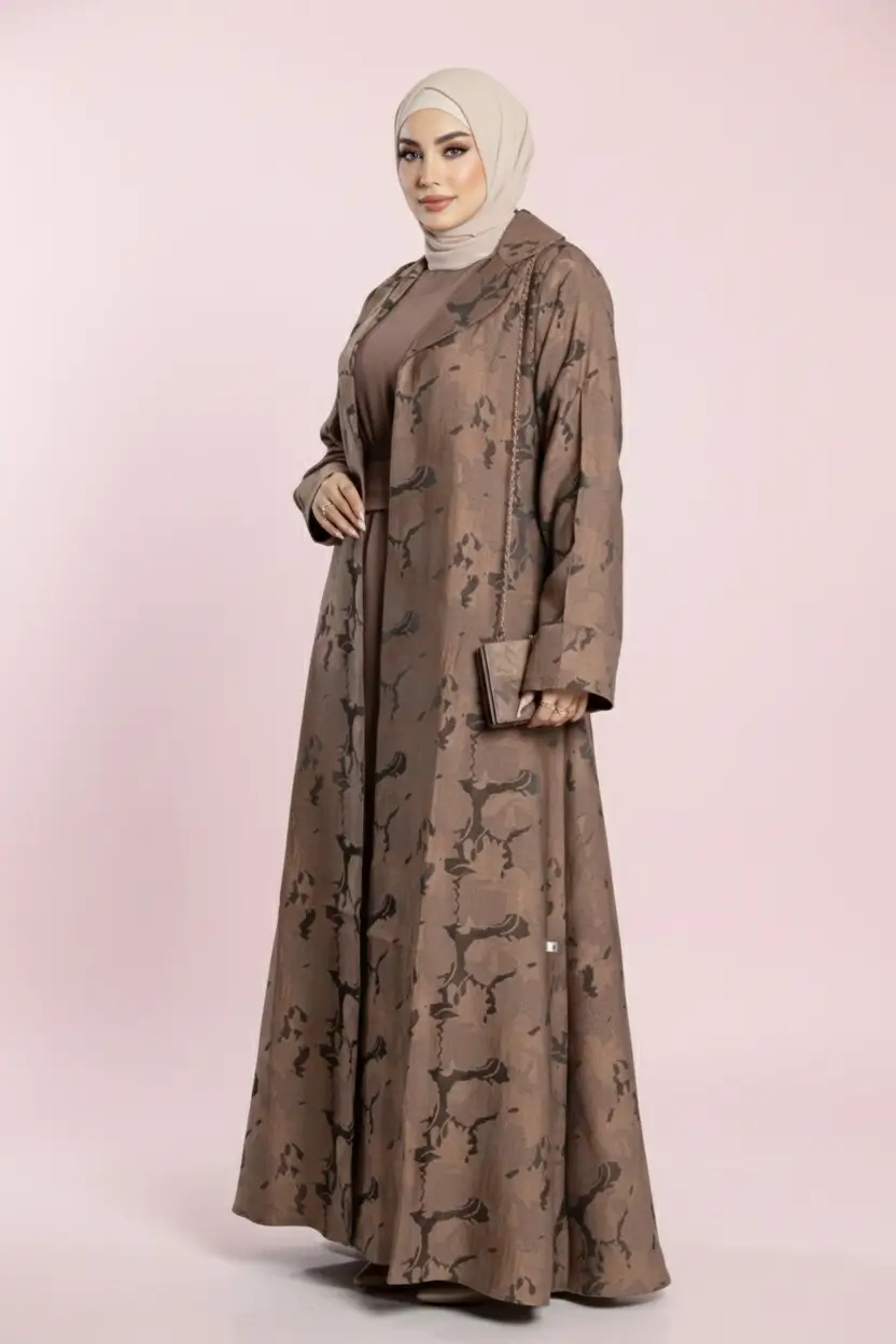 - فستان داخلي (بيزك): يأتي بلون بني غني ودافئ، مصنوع من خامة ناعمة ومريحة لا تسبب الحرارة.