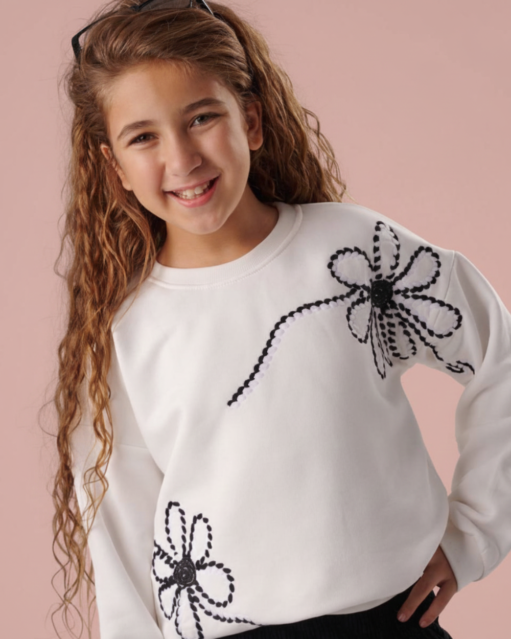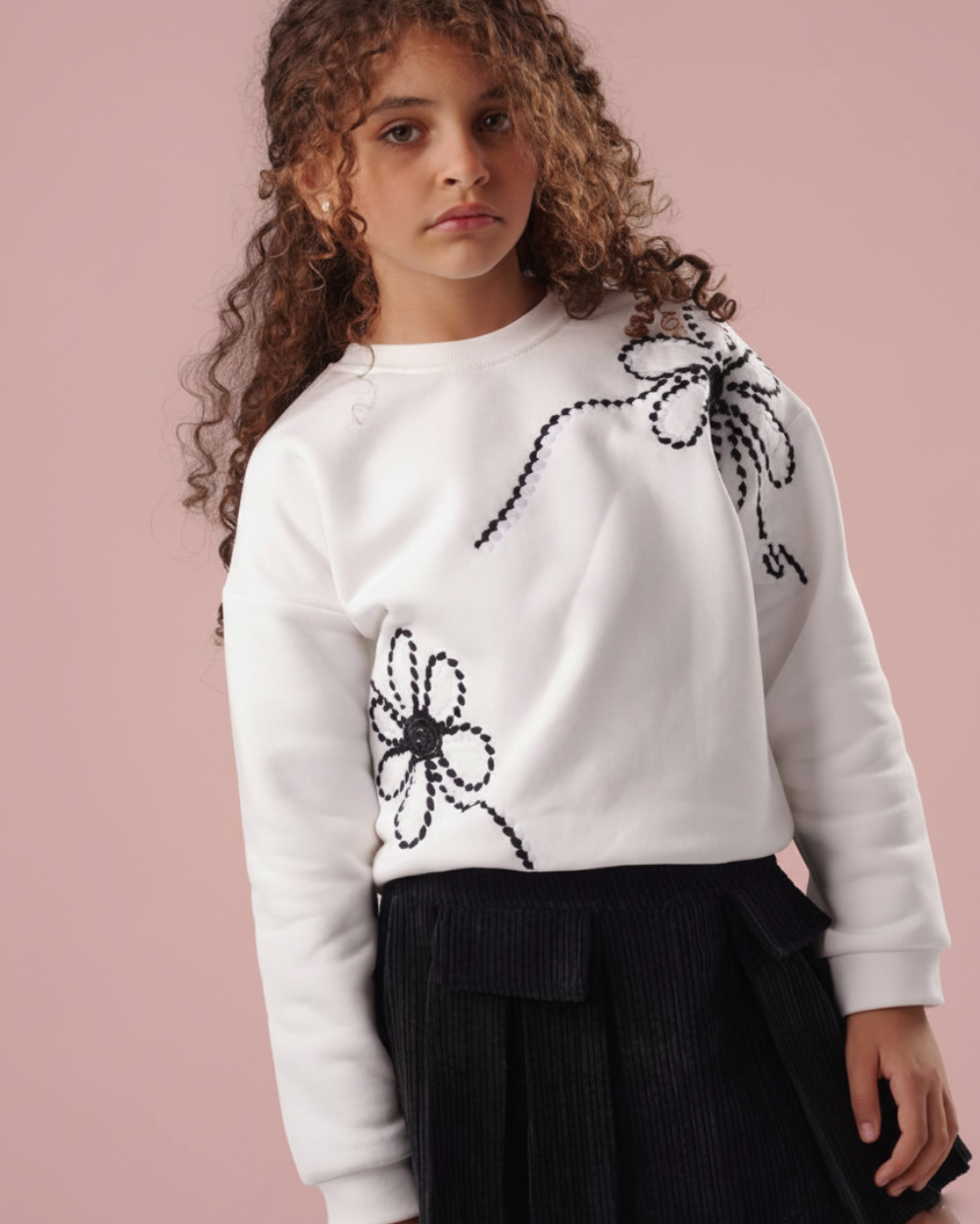 يتميز السويت شيرت بتطريزات يدوية وآلية دقيقة، مستوحاة من أرقى دور الأزياء العالمية، مما يجعله قطعة فريدة تبرز ذوقكِ الرفيع.